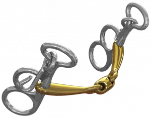 Dieses Gebissmodell kombiniert die zum Fahren zulässigen Seitenteile in Postkandaren Form mit einem doppelt gebrochenen Mundstück. So wirken die Hilfen flexibler, Stellung und Biegung werden etwas erleichtert gegenüber der Verwendung einer traditionellen Fahrkandare mit Stangenmundstück.
